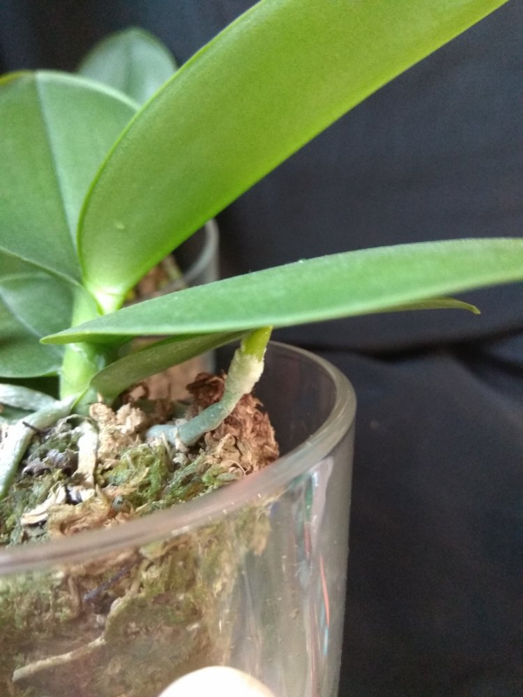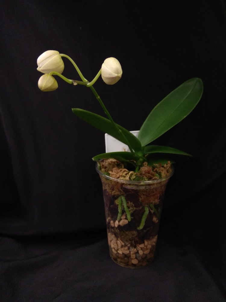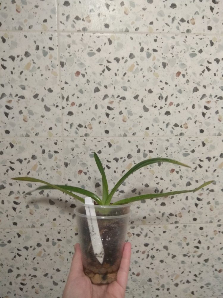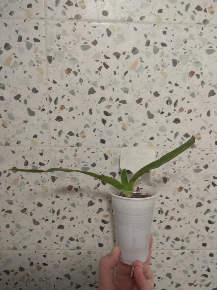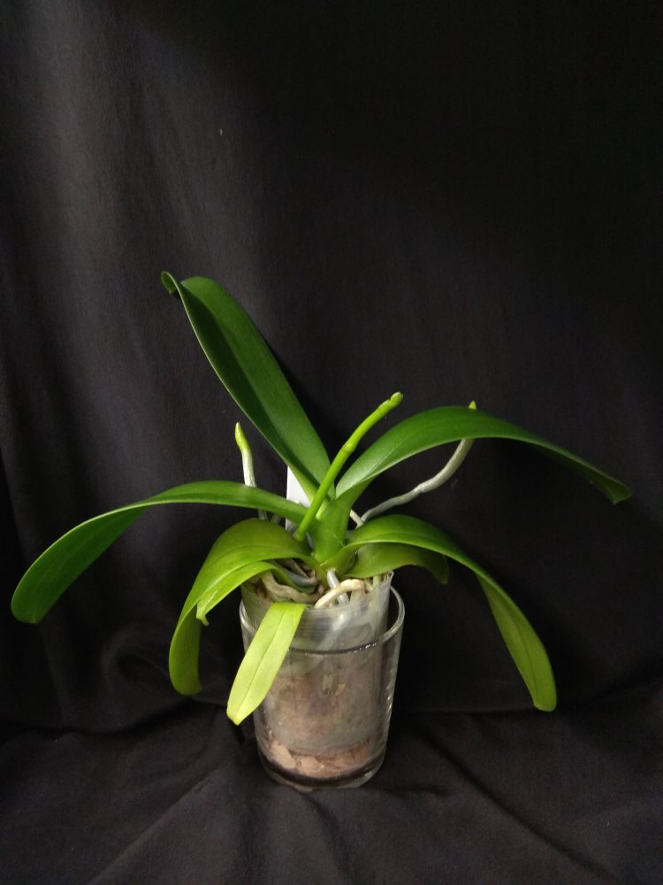 Phal Equalacea x Lioulin Blue Parrot, получена в мае 2024, в размере 1,7. К сожалению, почти сразу после получения у неё пострадала точка роста, но она умудрилась выдать детку. И, вот, детка выросла и готовится к цветению - очень жду: