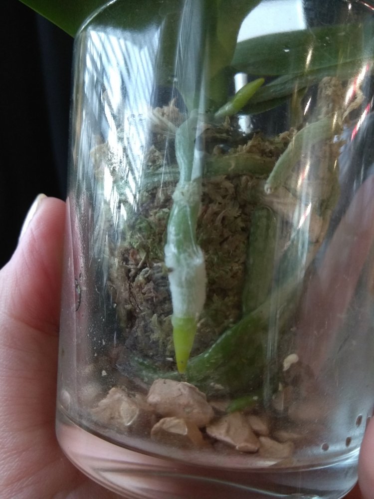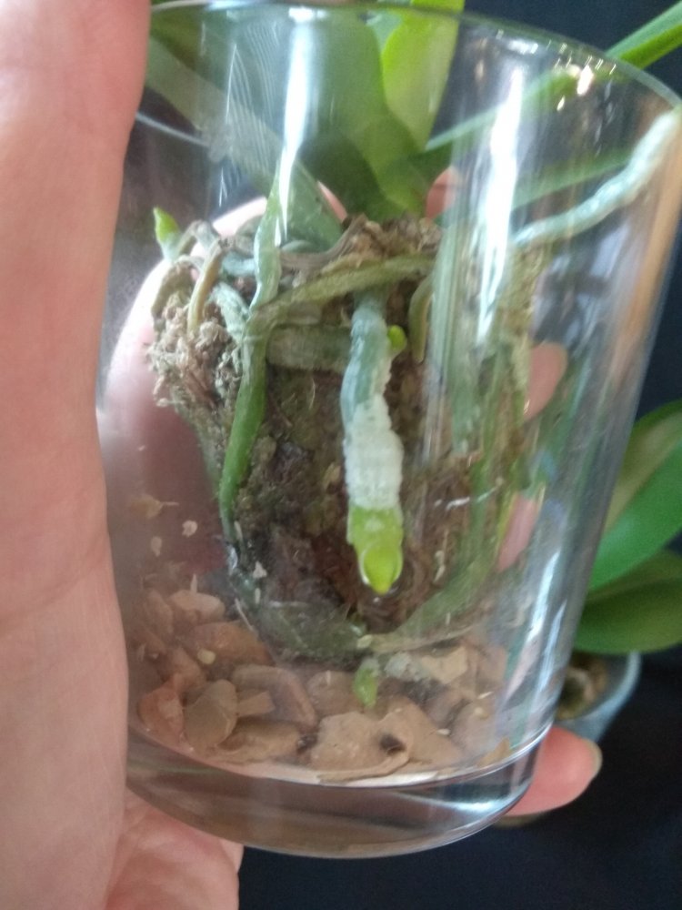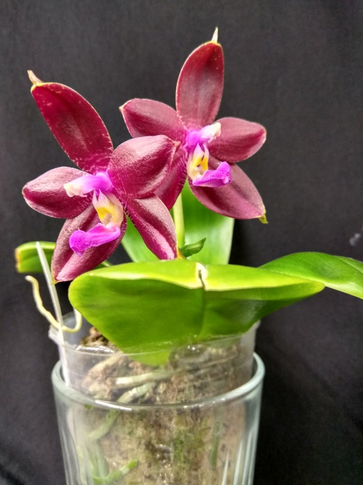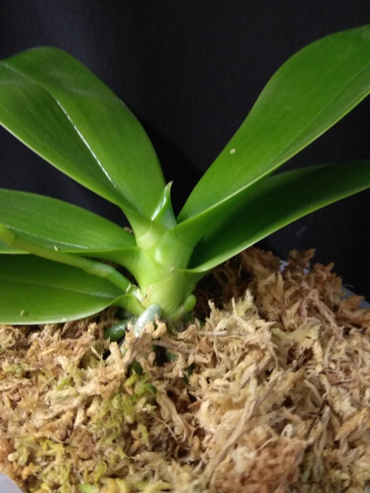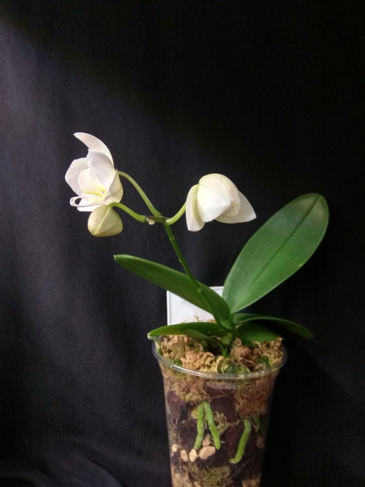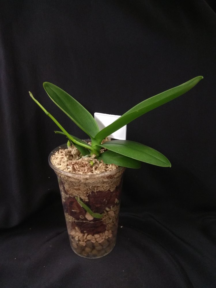 Phal Equalacea x Lioulin Blue Parrot, получена в мае 2024, в размере 1,7. К сожалению, почти сразу после получения у неё пострадала точка роста, но она умудрилась выдать детку. И, вот, детка выросла и готовится к цветению - очень жду: