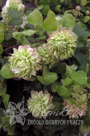 Сорт с полными цветками диаметром 12-15 см состоящими даже более чем 120 лепестков. Лепестки эллиптические, остро заканчивающиеся, гофрированые, бутоны светло-зелёные с розовым окончанием верха, по мере расцветания белеет. В полном расцвете белые, иногда с зелёной полоской по центру, с зелёным оттенком края и розовым оттенком. Цветёт на прошлогодних побегах. Период цветения: с мая до июня. Достигает высоты 1-1,2 м. Цепляется листовыми хвостиками. Выращивается при низких опорах в саду или контейнерах на балконе и террасе. Группа обрезки – 2 (слабая). Зона 4-9.