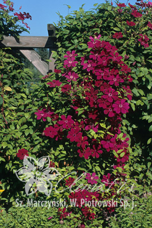 Здоровый, умеренно растущий и обильно цветущий сорт, высотой 3-4 м. Цветки тёмно-фиолетово-пурпурные, слегка бархатистые, с красными пыльниками, с июня до сентября.