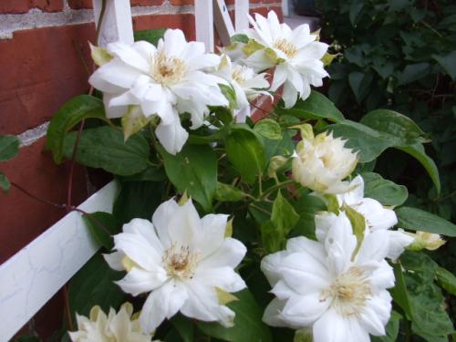 и вот этот очень нежный клематис Guernsey Cream, а какой компактный кустик