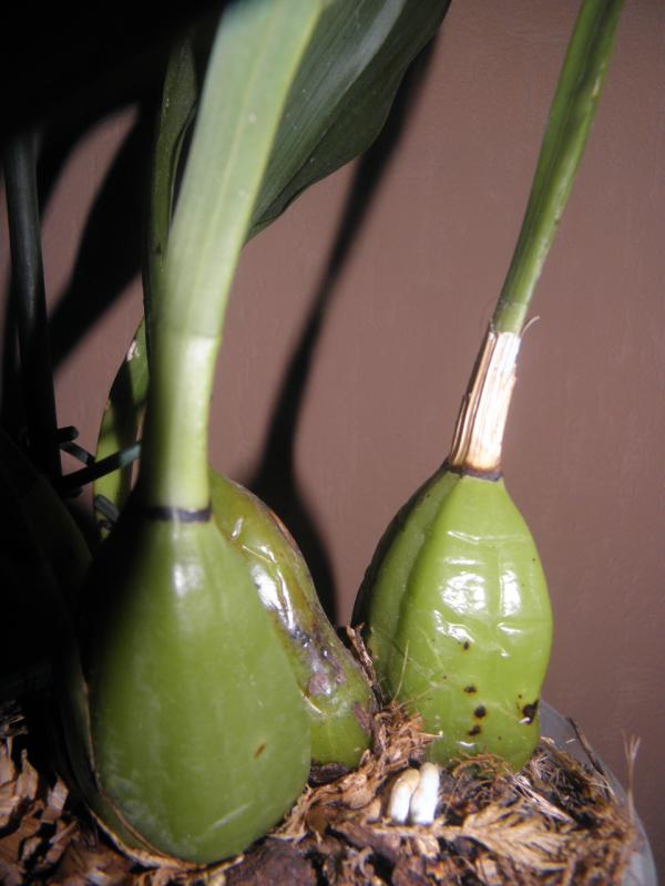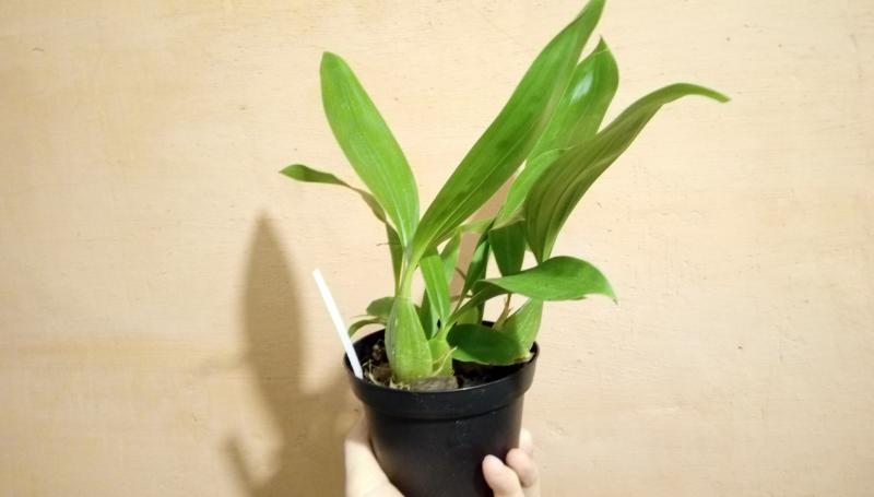Получила на прошлой неделе свою мечту! Coelogyne pandurata 4N! Ура! Скорее всего это подросток.... размеры: лист 17см самый большой, бульба 4*5см. Бульб очень много, а больших только 2. Корней полный горшок! Грунт - кора. При получении бульбы сильно усушены были, сейчас немного отпоились