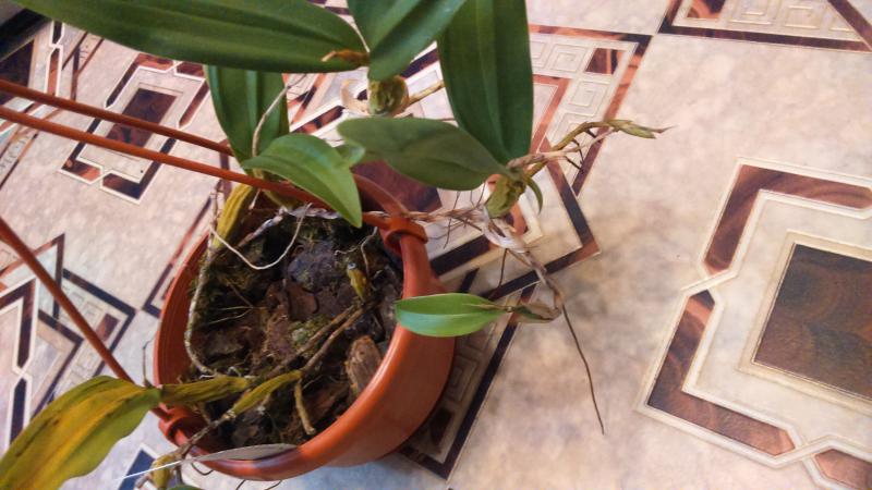 Здравствуйте, получила Coelogyne fimbriata, растение хорошее, сильное. Т.к. это первая моя целогина есть несколько вопросов: она будет все время как бы стелиться и расти в разные стороны вылезая из горшка или ее можно как-нибудь окультурить, чтоб аккуратненько сидела? От новых бульб корни висят вне горшка, не в субстрате - как с этим быть? Как посоветуете ее поделить, т.к. соседка уже выпрашивает деленку. Бульбы которые в горшке желтеют и скоро отмирать будут, когда полностью пожелтеют - отрезать по резюме или бульба сама засохшая и отомрет, и трогать ничего не надо? DSC_1808.jpgDSC_1809.jpg
