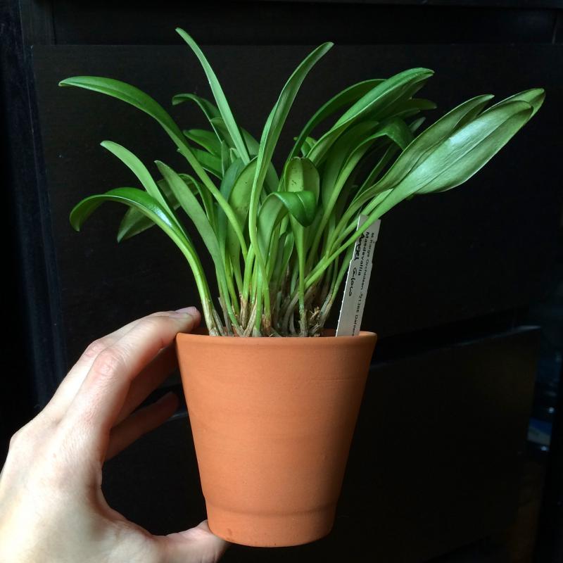 Получила свой Propetalum x Zygopetalum осенью 2016, пришло хорошее растение, за зиму наростил два новых роста, с одного зацвел, в наличии два цветоноса, огорчило то, что фото в каталоге не совпадает с тем, что в итоге получила, судите сами...P5240001.jpgP5240002.jpg