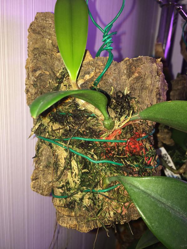 3. Bulb.macranthum, получен в конце прошлого года от Mikiorchid, в какой-то момент развалился (сам) на две половинки, с тех пор нарастил бульбу и формируется вторая, посажен на пробковый блок. У меня также не цвел.