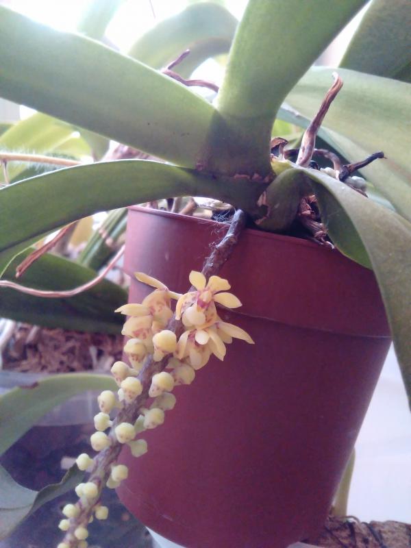 Phalaenopsis Zheng Min Smaragdine. От Карге. Цветочек 4.5 см, пахнет. Запах цитрусовый, но горьковатый, не сильный.