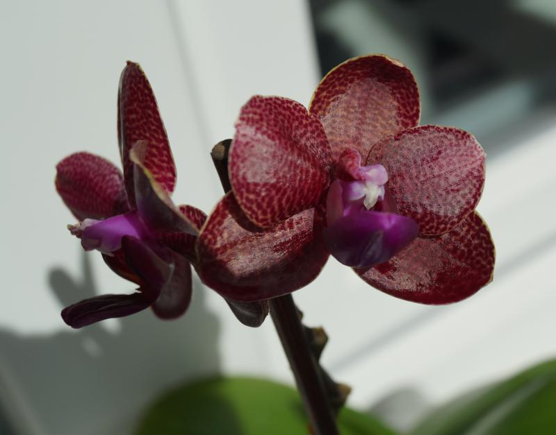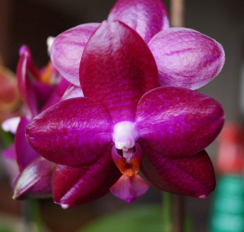 Зацвел гибрид от Peter. Ну так как тем сейчас по нему нет, выставлю тут. Мне нравится. оставлю в коллекции пока. Фото не передает полностью цвет, он более глубокий, с краснотой. Подразумевался вообще что будет что-то чисто красное, но к моему удивлению есть такие перышки по краям лепестков. К тому сорт по-видимому будет не жадный на цветение. Растение молодое, цветет первый раз, но уже два цветоноса. Вот... на ваш суд..)))
