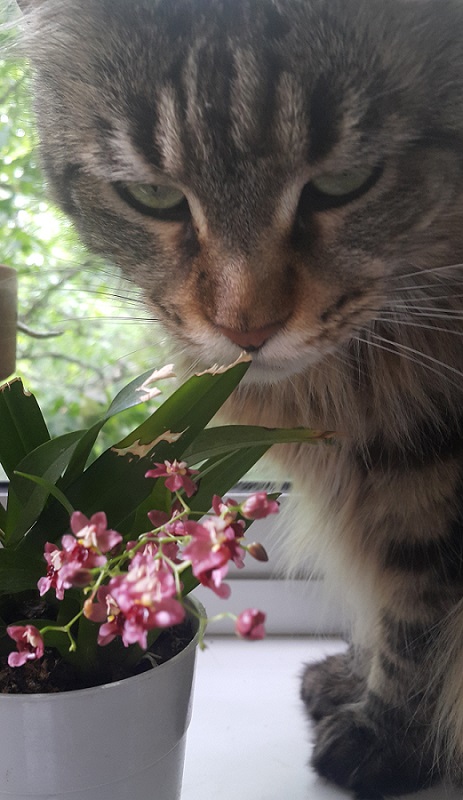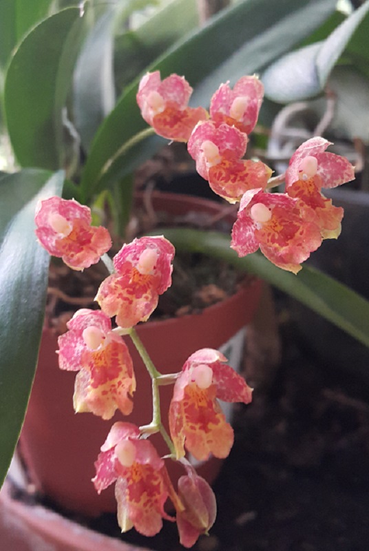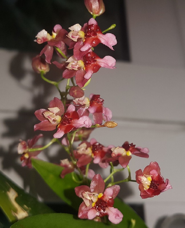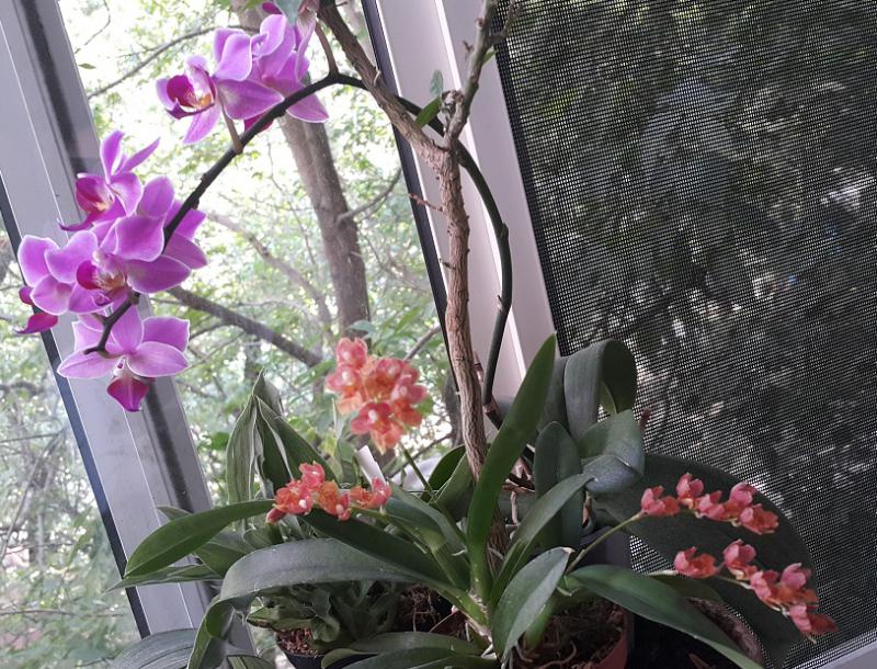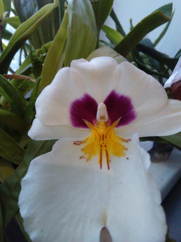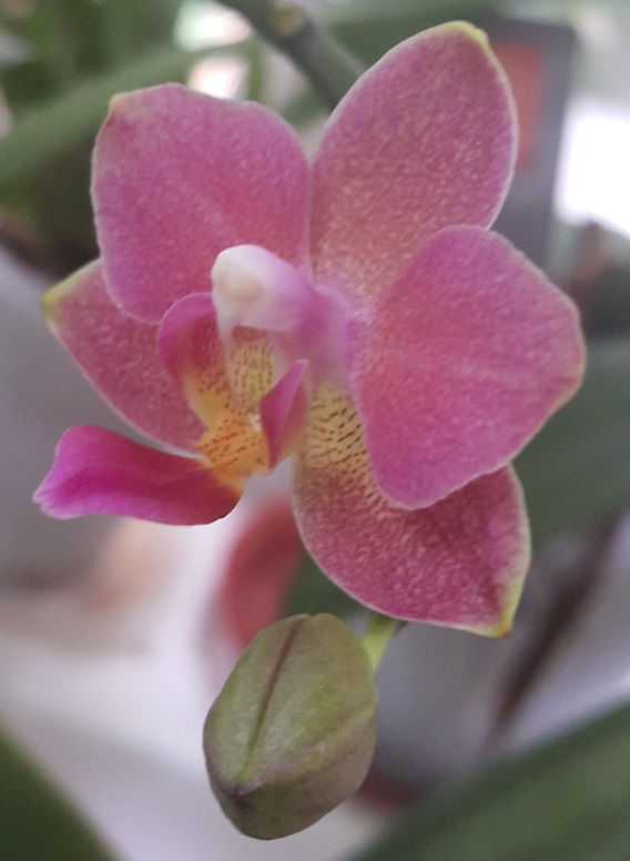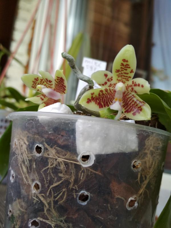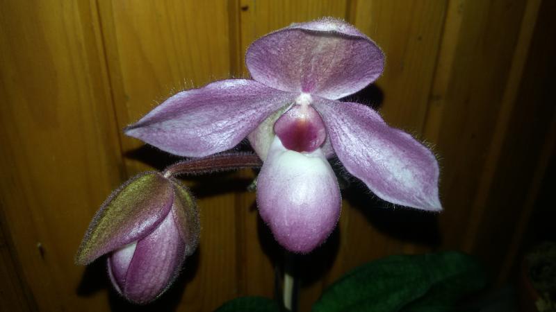Пришел в октябре 2016. Одна взрослая розетка, весной начал растить еще две, потом выдал чехол, но цветок был недоразвитый. Ножка короткая, сам цветок кособокий. Расстроилась. НО не поверила глазам - из этой же розетки еще вылез чехол. На фото видно остатки цветоноса. И вот мы такие