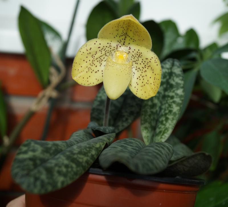 После полутора лет ожиданий, распустился мой застенчивый красавчик Paph. Armeniacum * Concolor . Дождалась!