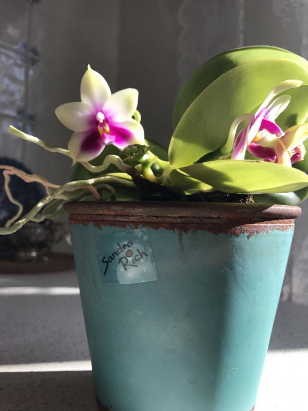 Он из спецпредложения 26266 P. LD Sun Dragon Snake Scales , получила в мае. Пришло очень сильное растение с мощной корневой системой, через месяц выдало цветонос и совсем недавно распустился цветок.
