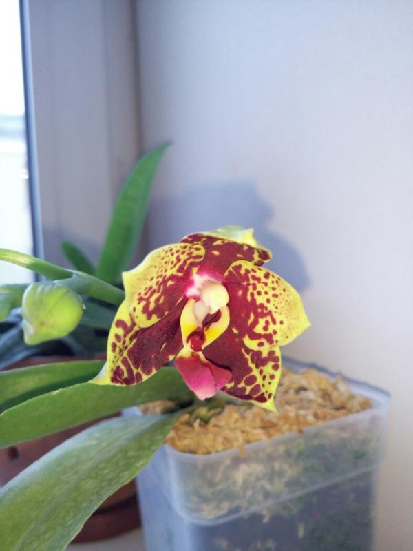 Свершилось! Терпения уже почти не осталось..три месяца мы распускались..и сегодня цветок начал открываться..Phal. Black Parrot с ОХОТЫ..подозрительно смахивает на Анаконду Яфон..но все равно мне он очень нравится. Спасибо большое!P71117-121256.jpg