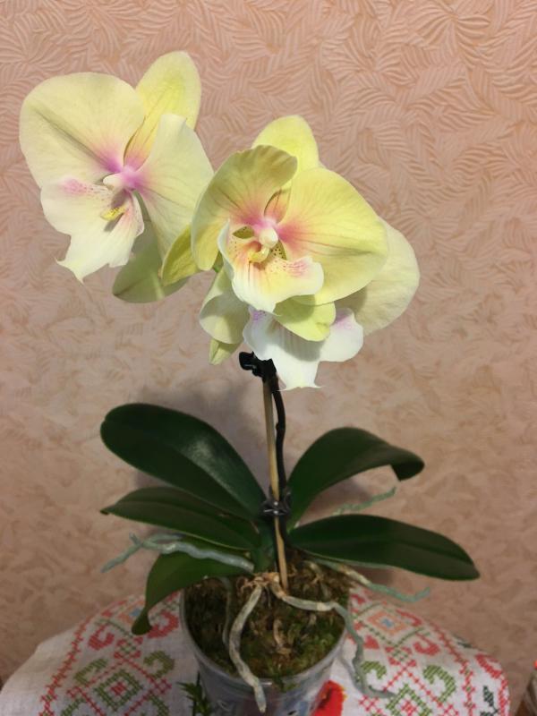 Зацвел Phal. Mok Choi Yew (P. gigantea Х P. violacea*Indigo) из форумных спецпредложений. Получен 08.12.2014
