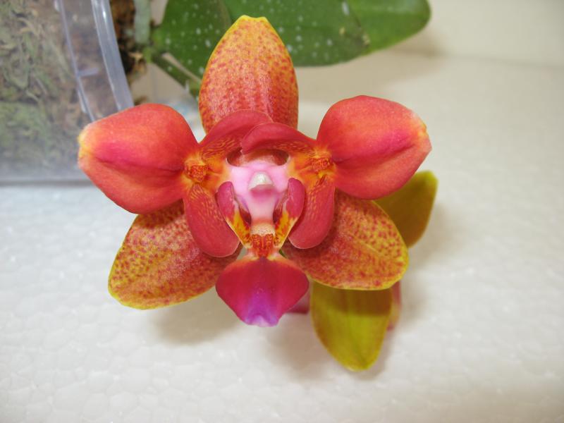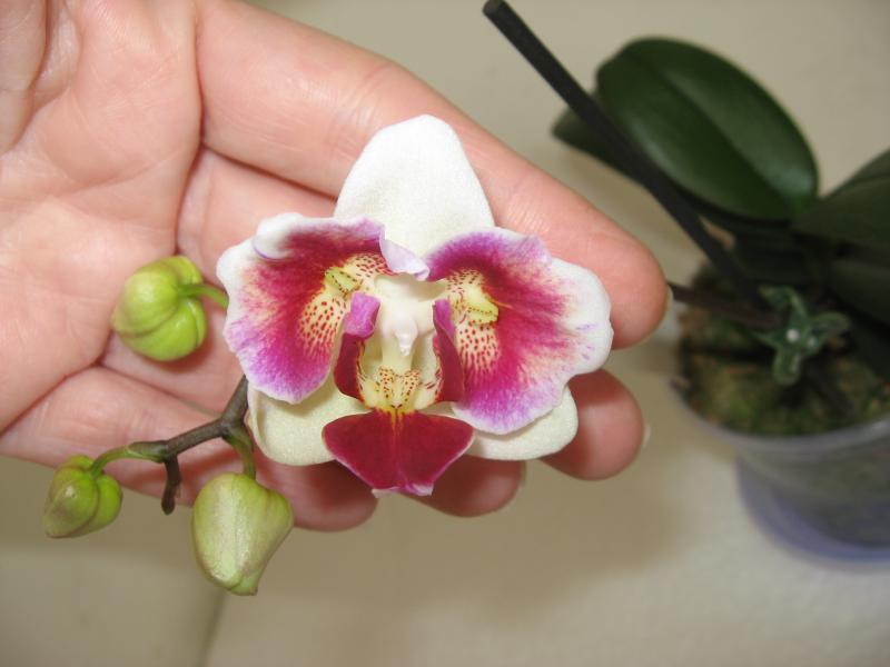 Милый пупсик, само растение вдвое меньше, чем обычные Phal.Carribean Sunset x P.minus.