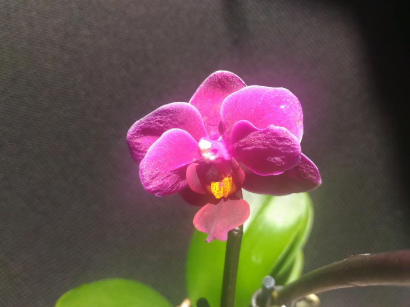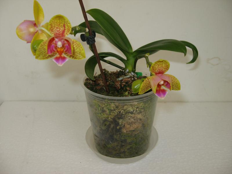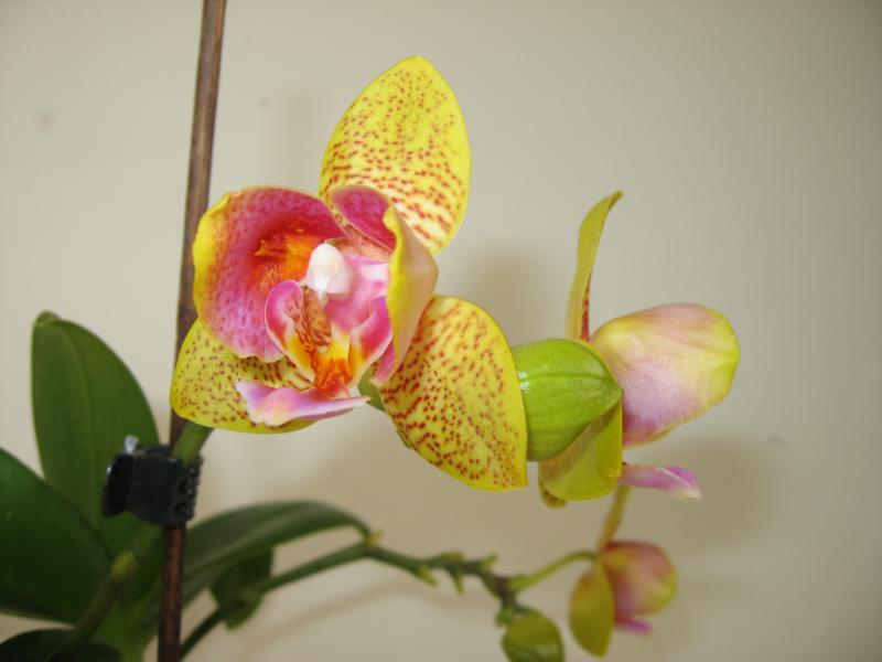 Phal.Tying Shin Cupid (mutation), материнское растение, к сожалению погибло у меня, это детка, выросла на корнях, прошло примерно около года и вот зацвел Очень люблю его, такой яркий и весенний! Жаль, что нет аромата, цветет двумя цветочками.