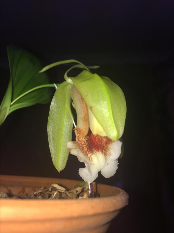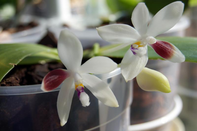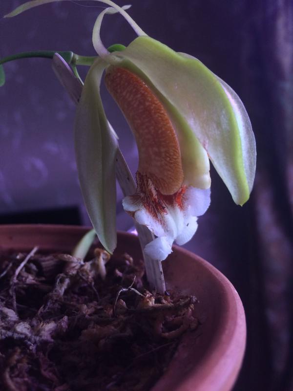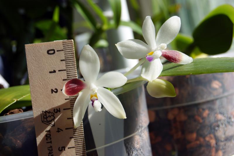 Она из Hennis Orchideen, шаг ризомы очень маленький - бульбы сидят вплотную, в высоту растение около 15 см, вот тут видно габариты - сидит в горшке 8см