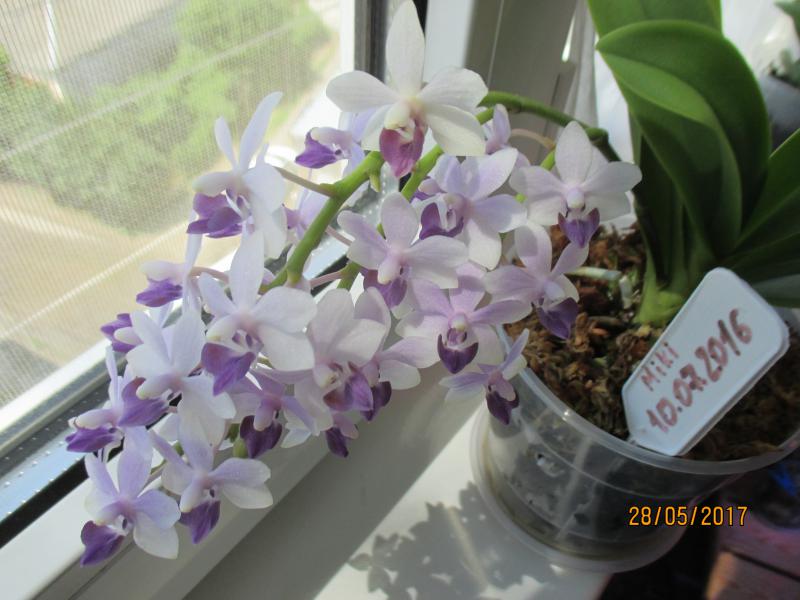 Dtps.Tzu Chiang Sapphire пришел от MikiOrchids в июле 2016 г. Первое домашнее цветение. Очень красиво искрится на солнышке.