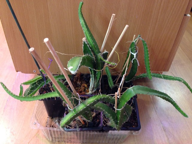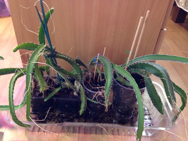 5. и для любителей экзотики Dragon fruit выращенный из косточек, посажен в 2013г. разросся, месяц назад рассадила в маленькие стаканчики.
