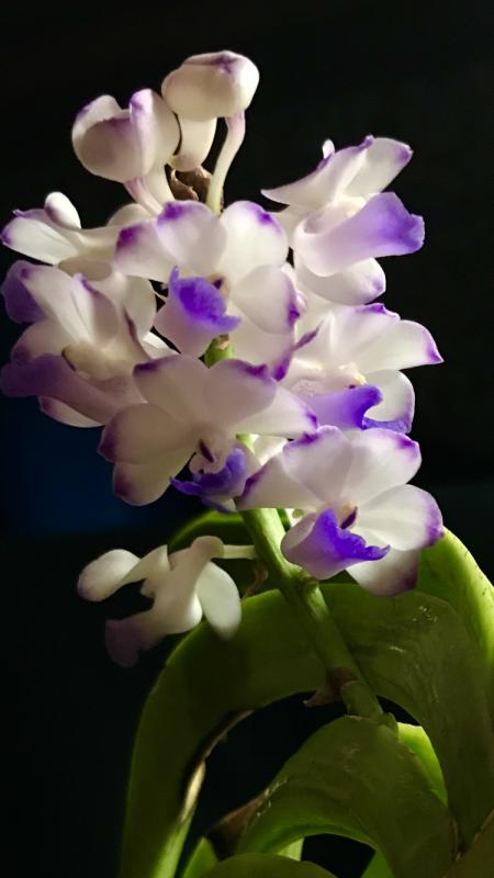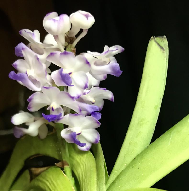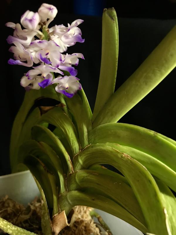 дистира, Neostylis Lou Sneary пришел в корзинке, в которой обычно ванды приходят, вот в этой корзинке и посажен в пустой пластиковый горшок с дырочками. Сперва подсыпала ему коры, но зимой начали корни подгнивать, все вытряхнула, так и живет в пустом горшке. Первый год куксился в моей душегубке зимой, так как корней было не супер много, поливала каждый день минут по 10 замачиванием, по весне нарастил корни. Теперь поливаю по погоде, в жару летом-каждый день или через день, когда пасмурно-раз в 3-4 дня. Живет он на солнечном окне без досветки, достаточно близко к стеклу, окно зимой днем приоткрыто на проветривание, летом открыто постоянно.