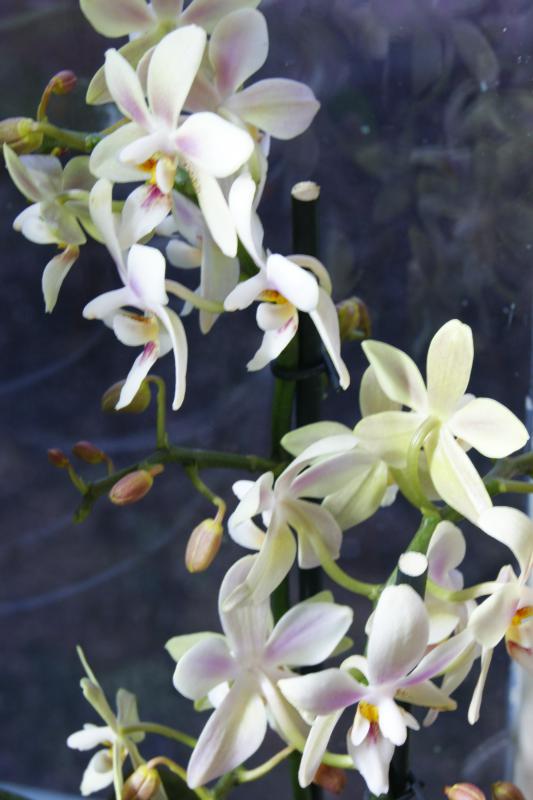 Дендр мощный, бульбы толстые, потенциал цветения огромный, и все равно заложилось почек больше, чем смогло раскрыться, некоторые подсохли. Он у меня три года, в первый год ствол вырос около 20 см, на верхушке было два цветочка, на второй год новая бульба выросла выше, и цветков было штук 5, а третья бульба уже 55 см, а цветы - сами видите.