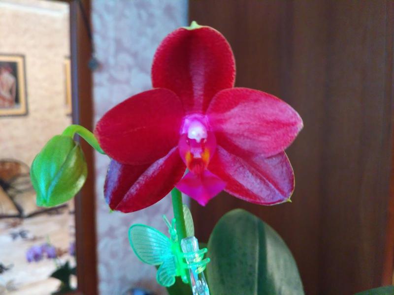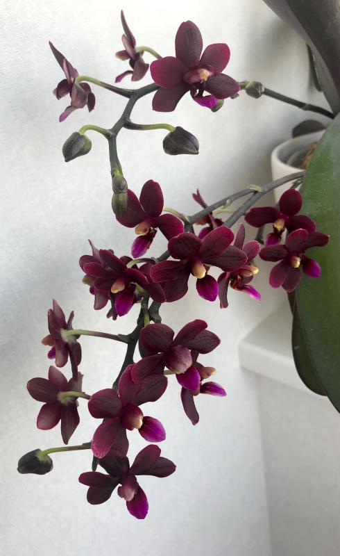 Phalaenopsis bastanii (Tenshinorchids) на семи цветоносах в основном формируются детки, три недели приходится любоваться только одним цветочком, аромата пока нет.