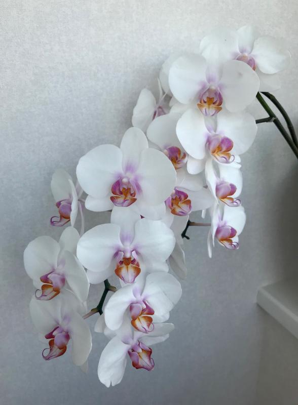Первое цветение началось в конце сентября, продлилось до конца марта. В прошлом цветении было 5 цветов, сейчас 3. Цветы оч.эффектные.