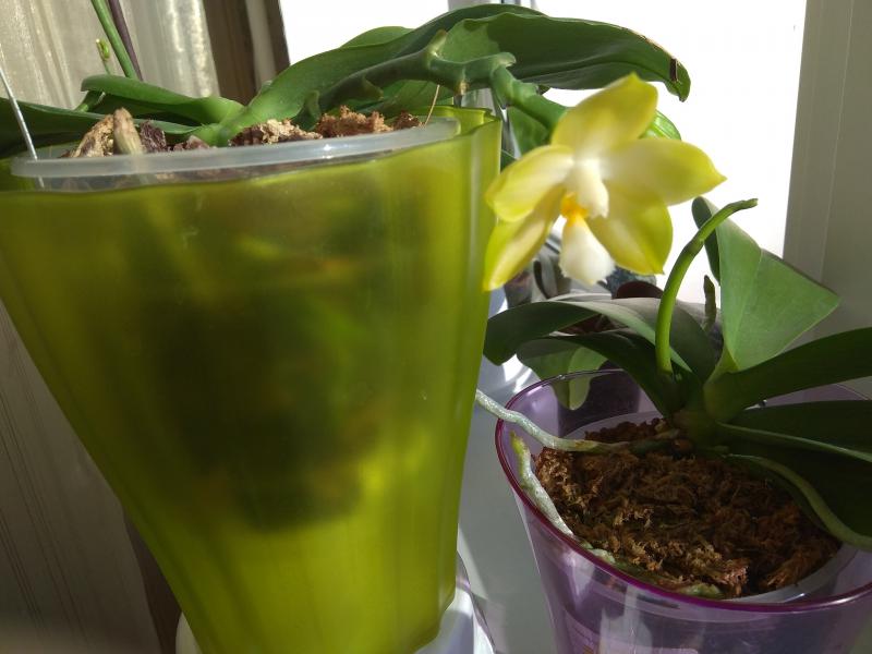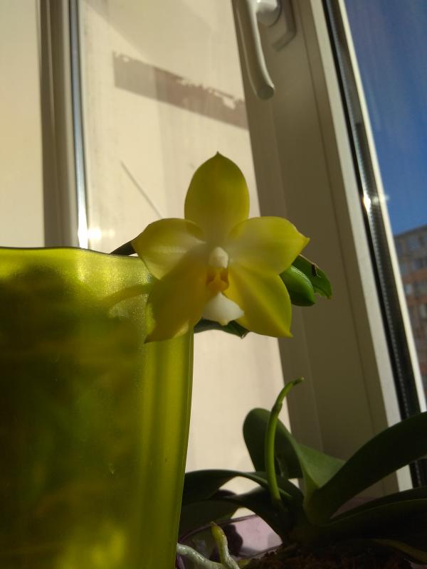 Немного не так как обещалось расцвел гибрид phal. aphrodite x cochlearis с последней весенней охоты. Совсем не плох, но больше взял от афродиты, чем от второго родителя. Цветение первое, два цветоноса, цветочки 6-7 см не пахнут. Цветоносы растут вверх, не поникают, думаю будущие цветения будут более обильными.