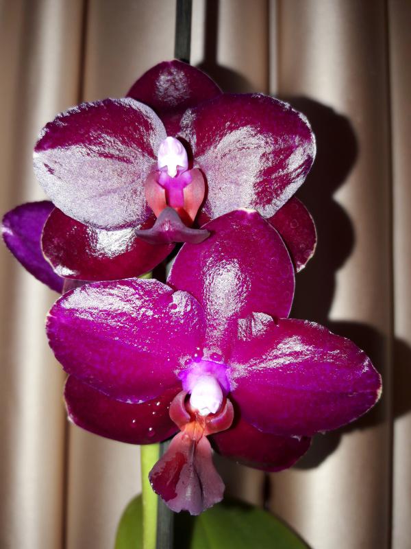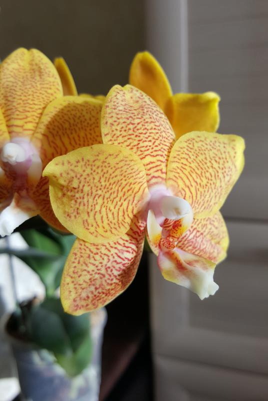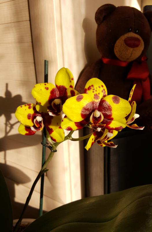 Dtps.Kingcar big orange. Первое цветение, небольшой цветоносик отцвел двумя цветками около 8 см. Запаха нет.
