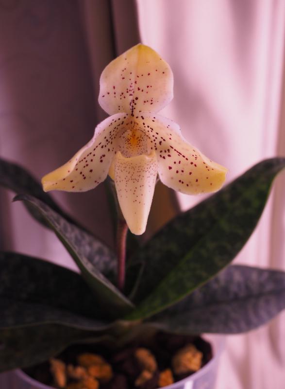 Хотя, если по-честному, моей заслуги тут никакой, девочка справилась сама, вырастив два чехла под зиму с полным отсутствием подсветки. Организовать ей освещение получилось только к самому началу цветения, когда уже бутоны показались из чехлов.