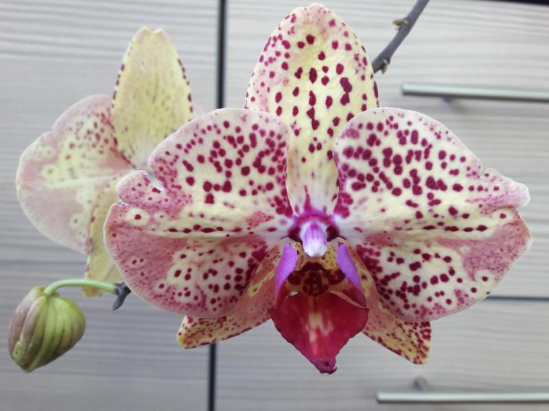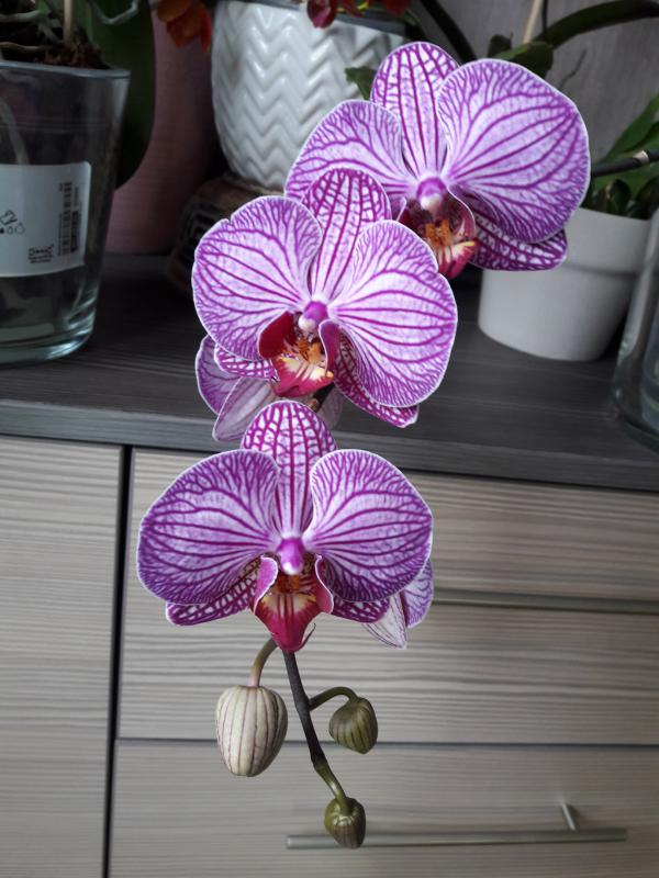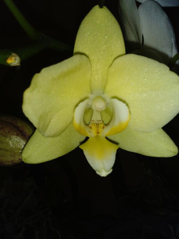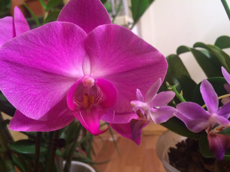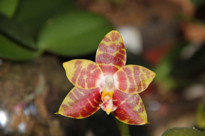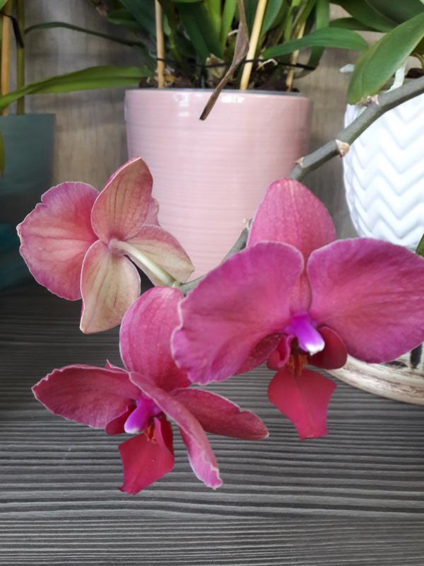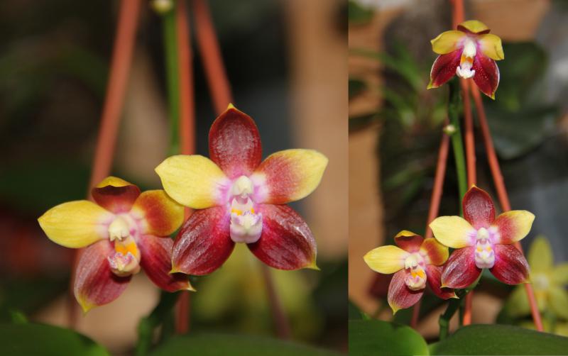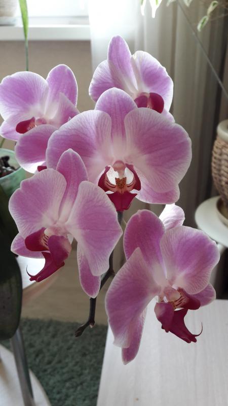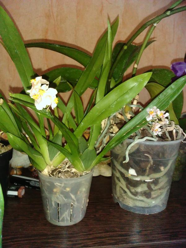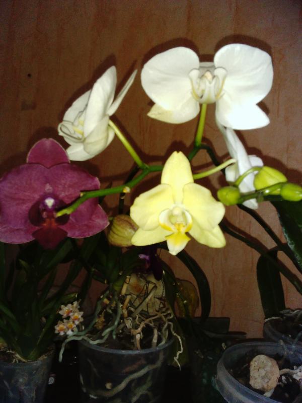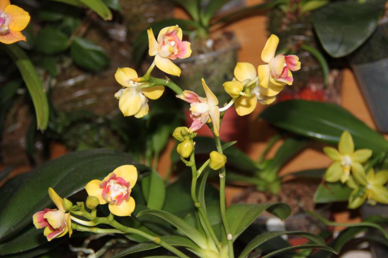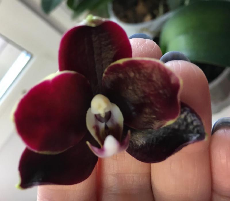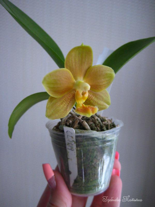 Tolumnia Jairak Firm 'cider' от Карге. Мини орхидейка, не ароматная, цветок 2 см. Все растение вместе с цветоносом в высоту 11 см. Обычно цветов на цветоносе несколько, но у меня растет без подсветки, поэтому пышное цветение только в летний период. Цветонос может ветвиться, а так же после цветения, если он не пожелтел и не засох, отрезать его не нужно, вскоре может продолжиь расти снова. Толумнея любит яркое солнце, летом у меня растет на улице с притенением в дневные часы.