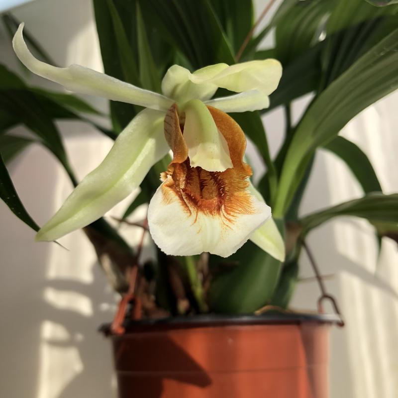 В комнате распустилась Coelogyne Lyme Bay (speciosa x usitana). Ароматная красавица.