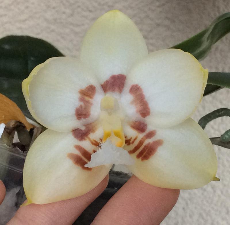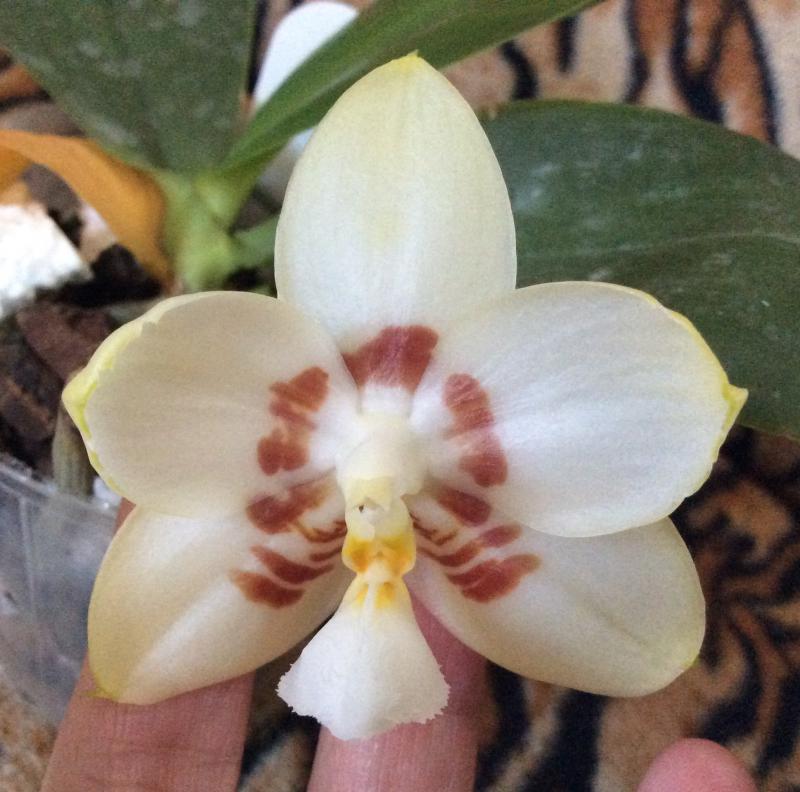 Вот фото, я ее ещё не посадила. Это готовое к цветению растение. Размах, ну где-то см 15 или меньше даже.