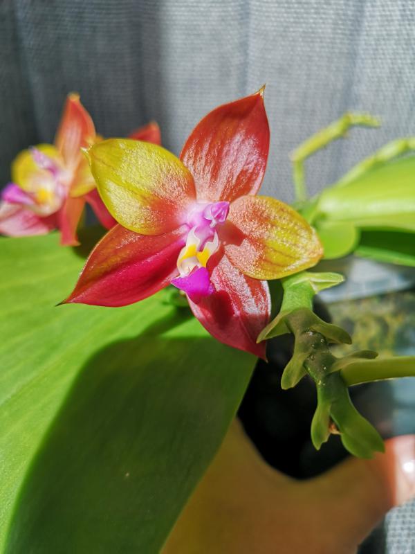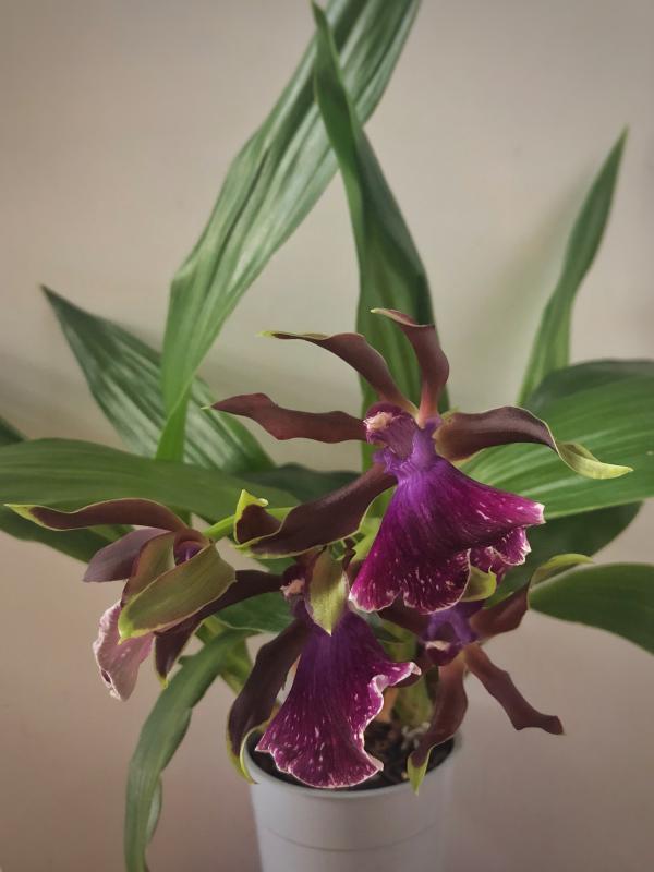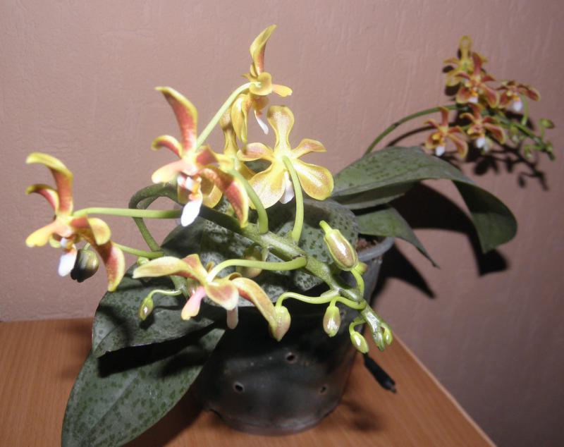 На фото спеца он, конечно, не похож. Похож просто на Micholitzii. Запах невероятный, очень необычный, конфетный. Цветонос не длинный и разветвлённый, а короткий, с двумя-тремя цветочками, но цветоносов очень много, кажется, в итоге он будет просто весь усыпан цветами. У меня начинает цвести второй - посмотрим, но вроде бы, так же.