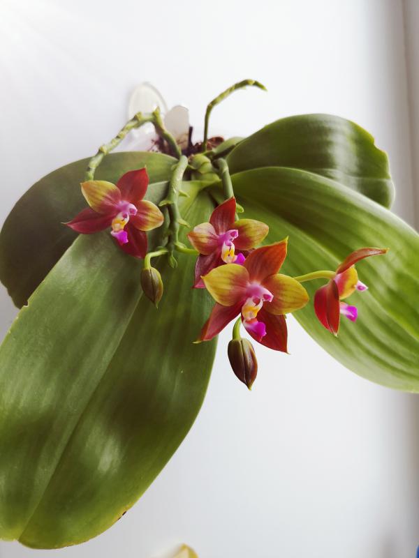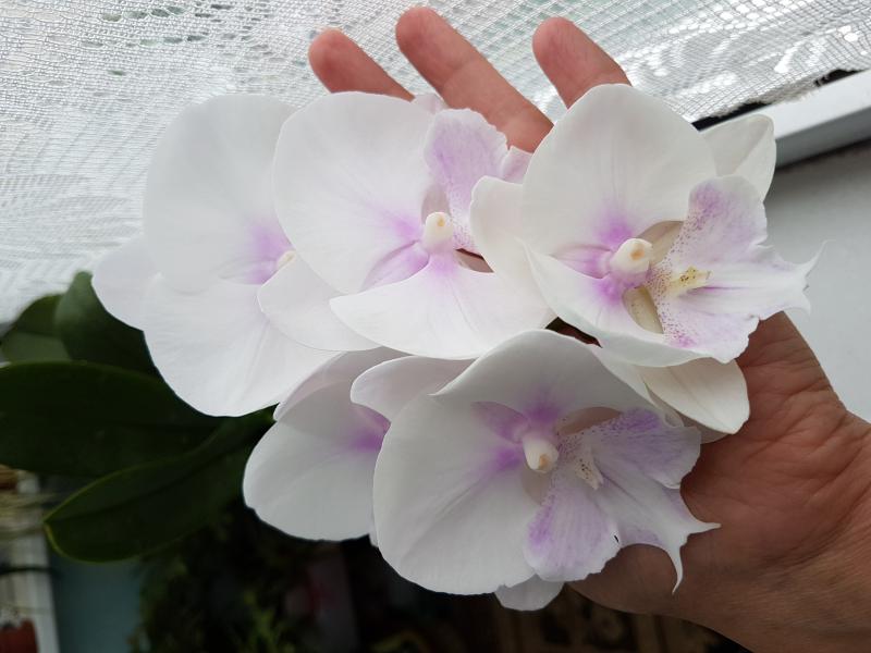 Бедовый фаленопсис, с трудом цветёт у меня. То он пытался загнить в основании цветоноса, то подцепил вредителей, то отсушил бутон, то потом решил не раскрывать созревший другой бутон, я его сама раскрывала, лепестки слиплись. Теперь он думает, что он колокольчик, не хочет особо раскрываться, застыл. Но пахнет потрясающе, ландыш, даже нежнее.