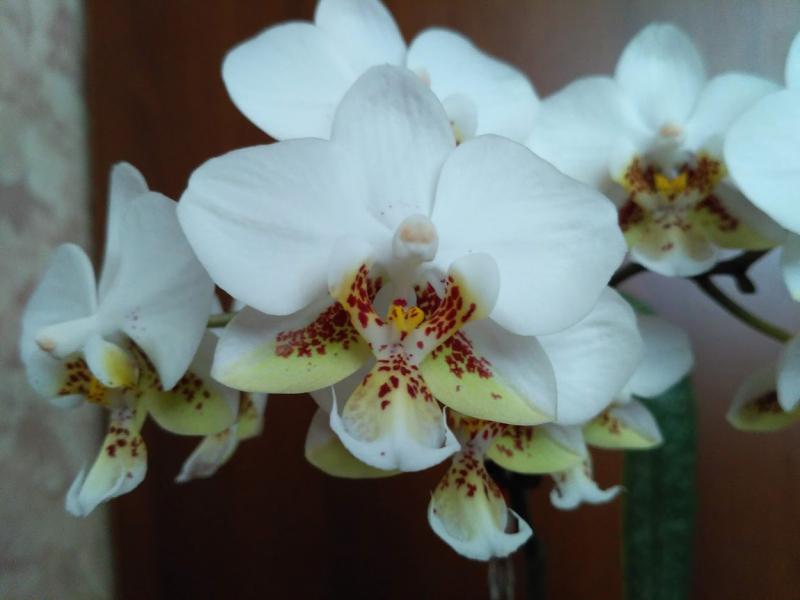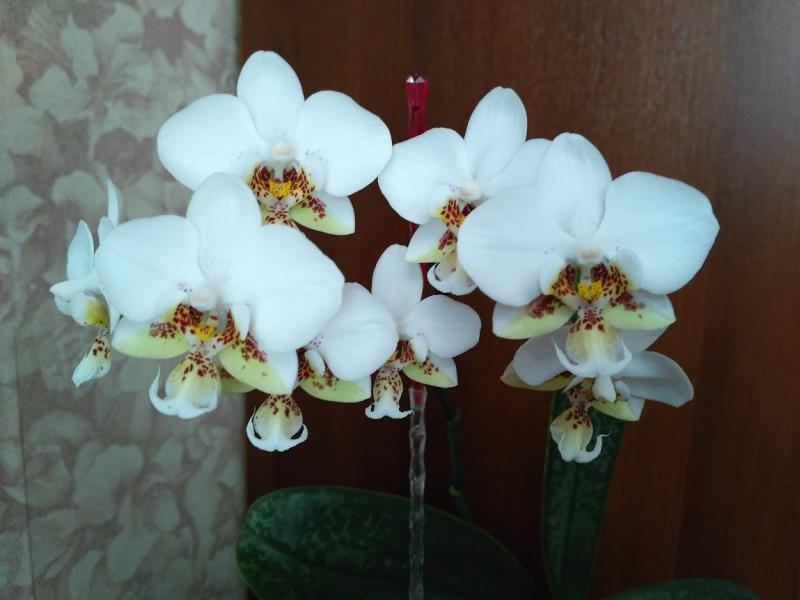 Стюартиана пико чип, жаль, что на нее упала другая орхидея и сломала пол цветоноса, а то было бы еще краше.