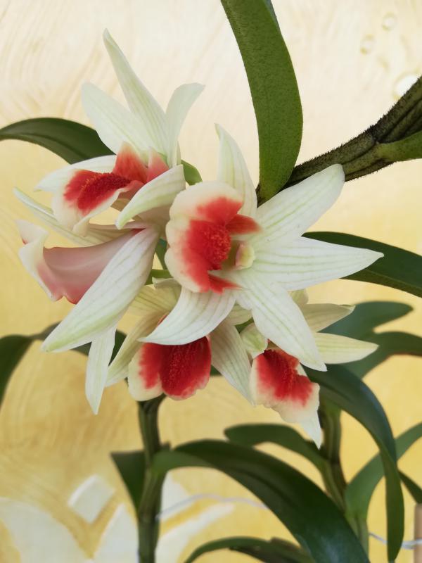 хорошо видно, что цвет губы у нового цветка бледный, с возрастом становиться насыщенно красным.
