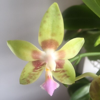 Во так расцвёл мой Yins Shin Jewel x (Venosa x Mitchilitzii) с охоты. Распускается насыщенно зелёным, со временем желтеет. Не понимаю пока, ценный мех, или нет. Губа контрастная. Есть легкий аромат.