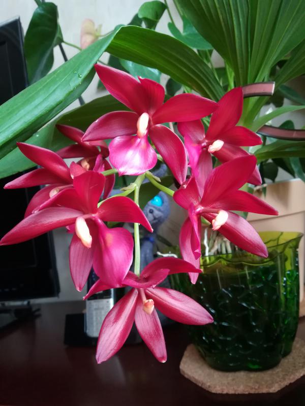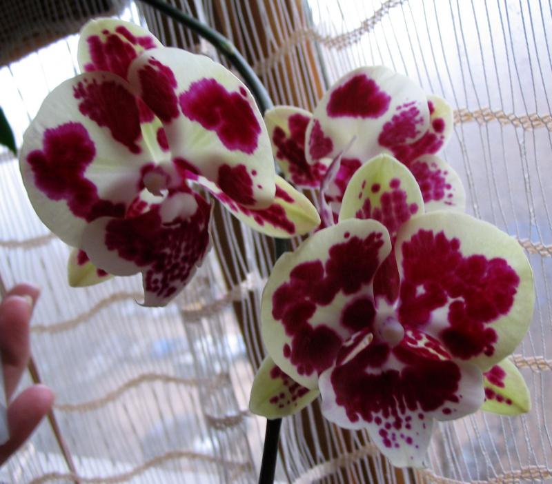 был куплен здесь из наличия цветущим, весной этого года. Это уже третье домашнее цветение, постоянно допращивает то один то другой цветонос. цветок очень плотный, лаковый, аромат присутствует.