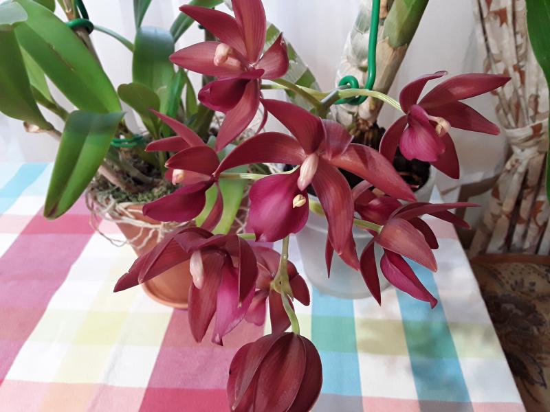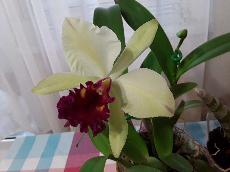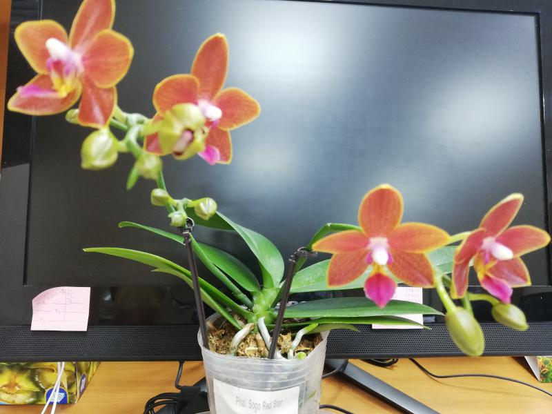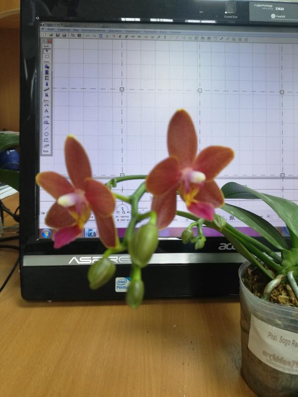 На сайте этого поставщика заявлены оба варианта цветения.Ну вот собственной персоной ещё один "неправильный Бангкок Сансет". Получен в сентябре от Карге. Взрослое крепкое растение с растущим цветоносом длиной сантиметра два. Несмотря на "недостаток освещения", о котором много тут говорилось, благополучно дорастил цветонос и вот... любуйтесь! Только, к сожалению, не на что...