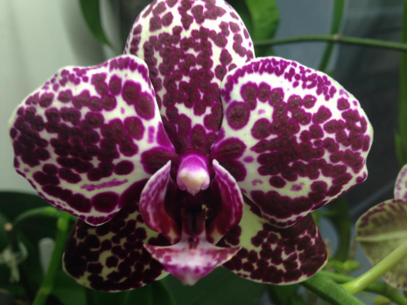 Phal. Lioulin Wild Cat , от Miki, первое цветение, очень порадовал, в разгар цветения скончался в одночасье, отпали все листья, сгнили все корни, трупик положила в тепличку, лежит как в мавзолее напоминанием что угробить можно очень быстро даже вполне здоровое растение.