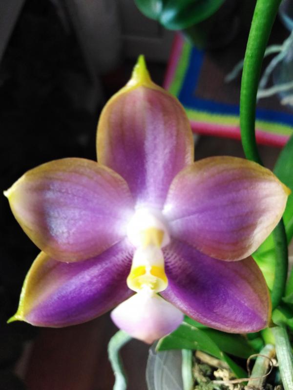 Phal. Luedemanniana x sogo lawrence, цветет второй раз, всего три цветоноса, на двух по одному цветочку, в прошлый раз цвёл пышнеее, было 3 бутона, чего то ему не хватает