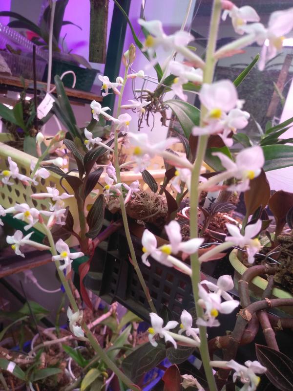 P. I Hsin Sport Leopard раскрыл первый цветочек. Поставщик Яфон, заказ145902 от 28.04.19. Цветок 5 см, аромата нет. . Maxillaria vitelliniflora, поставщик Seidel, куплена на другом ресурсе. Цветочек около 1 см, аромат не ощущаю.. ОБИ-нопсисы. Лудизия колосится