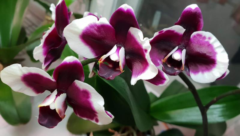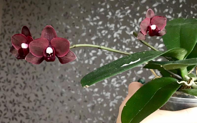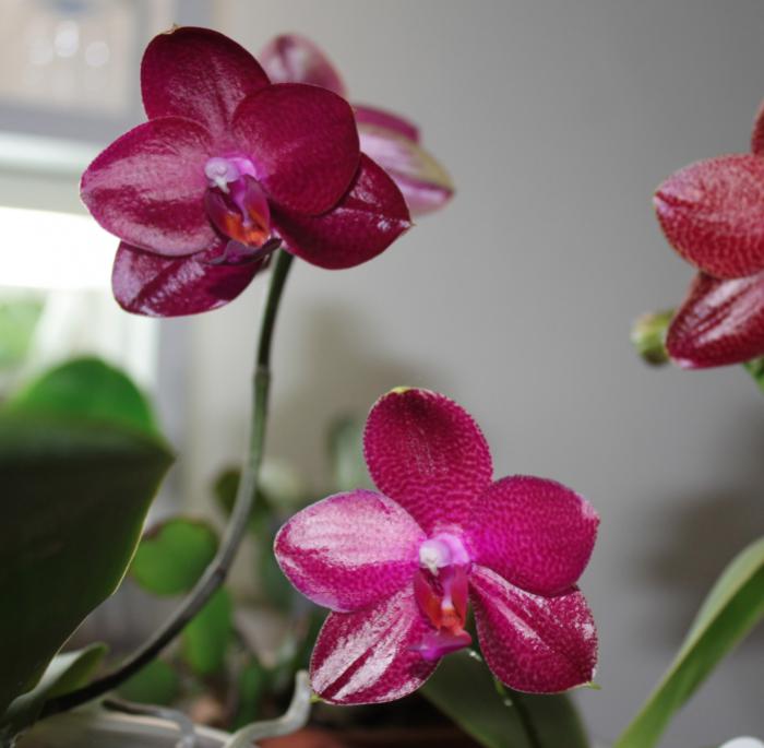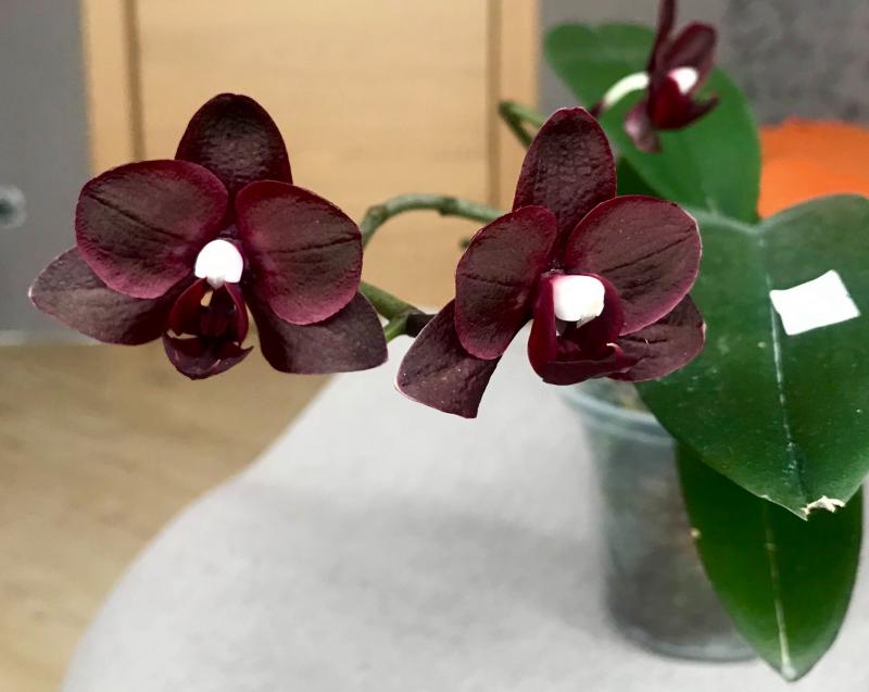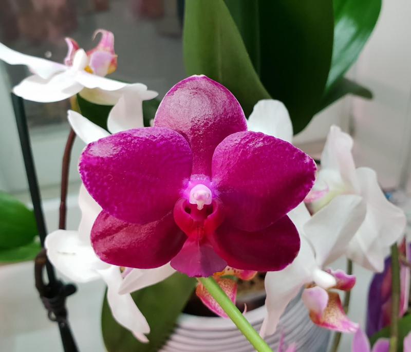 Днем позже расцвел и у меня Phal. Sogo Grape - он темно-фиолетовый и форма мне очень нравится. Если добиться обильного цветения будет очень красиво. Может тоже позже сфотографирую его с другими для сравнения цвета.