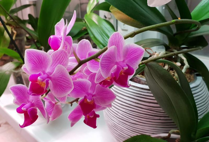 Ну и еще одно групповое фото, слева направо: Phal. Tying Shin Phoenix Peter, P.Schilleriana Pink Butterfly' AM/AOS от Miki (довольно-таки крупные цветочки, не ожидала) и H456 Phal.Zheng Min Quetzalcoatlus.
