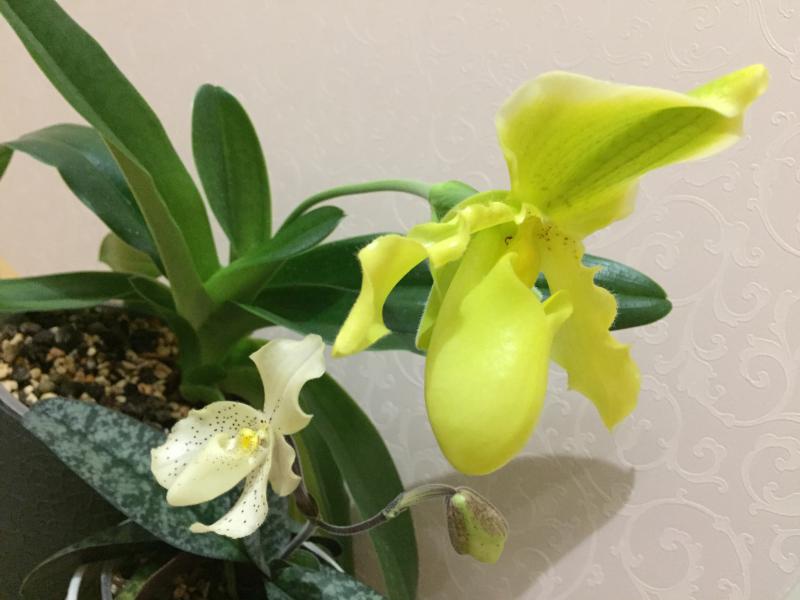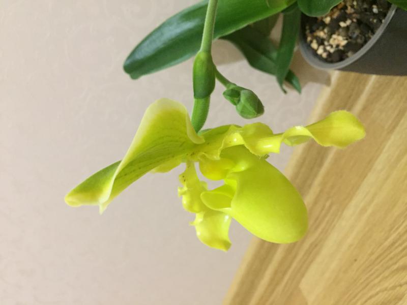 P. Green Lip, у меня уже второй год, цветет зимой, в этот раз 4 цветка и гонит второй цветонос, без аромата