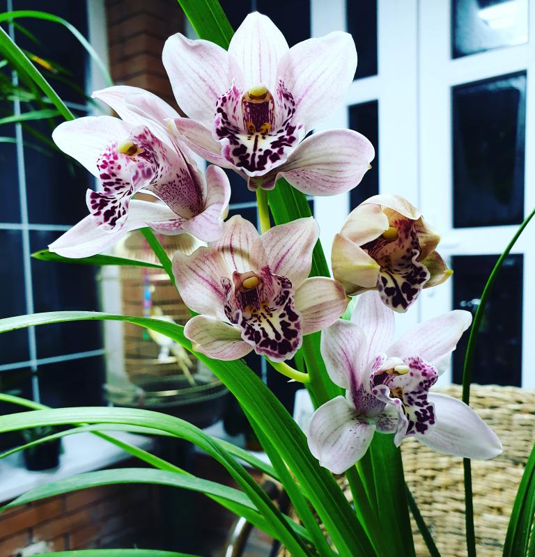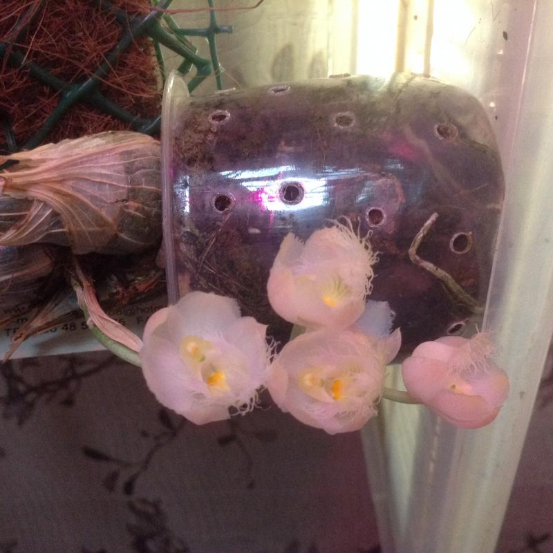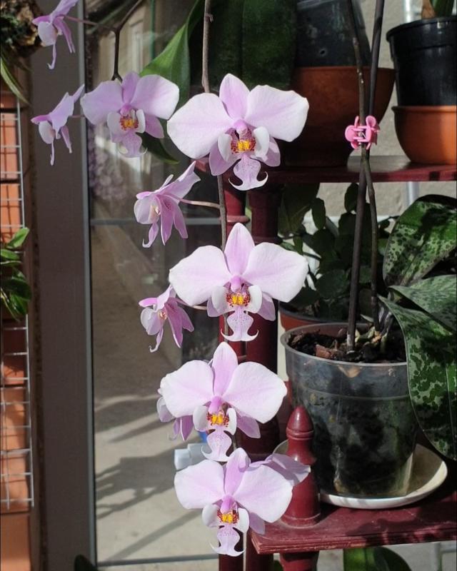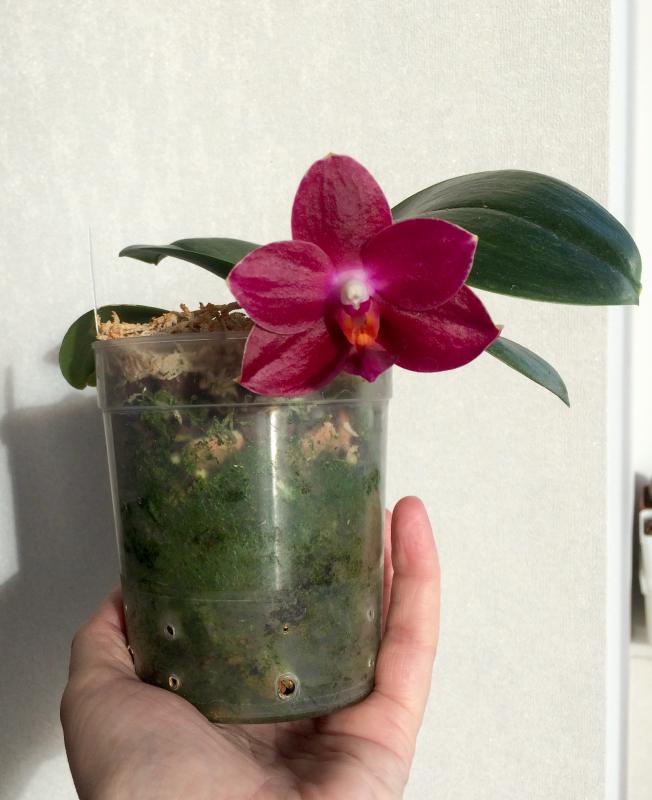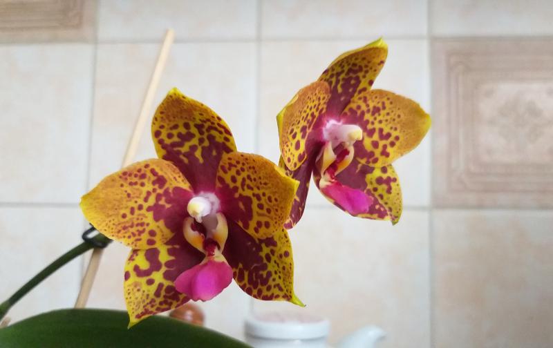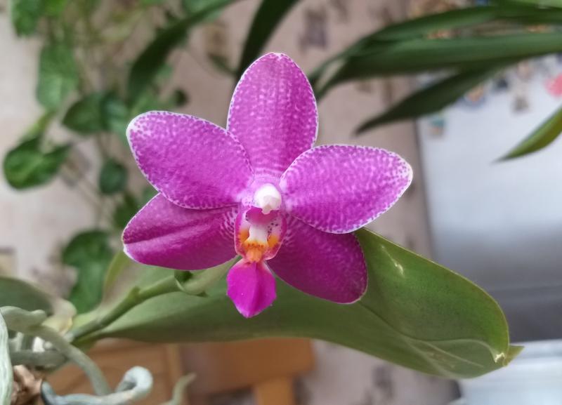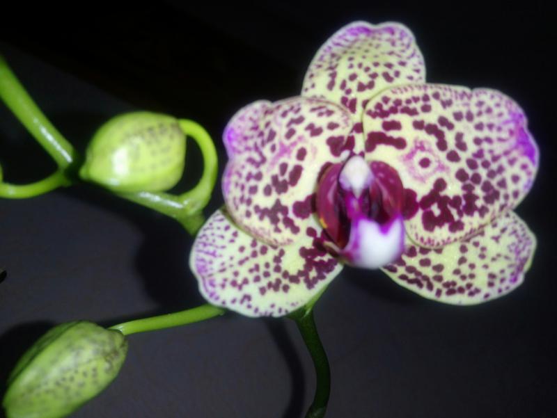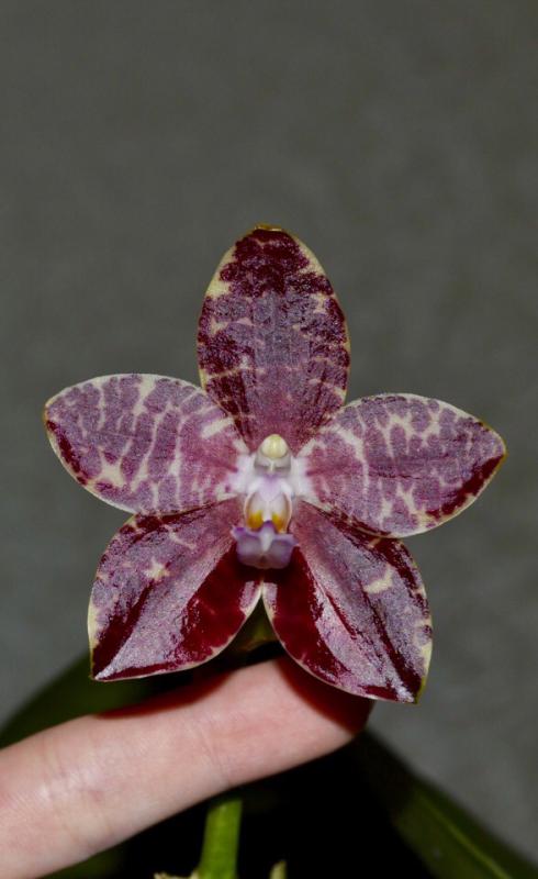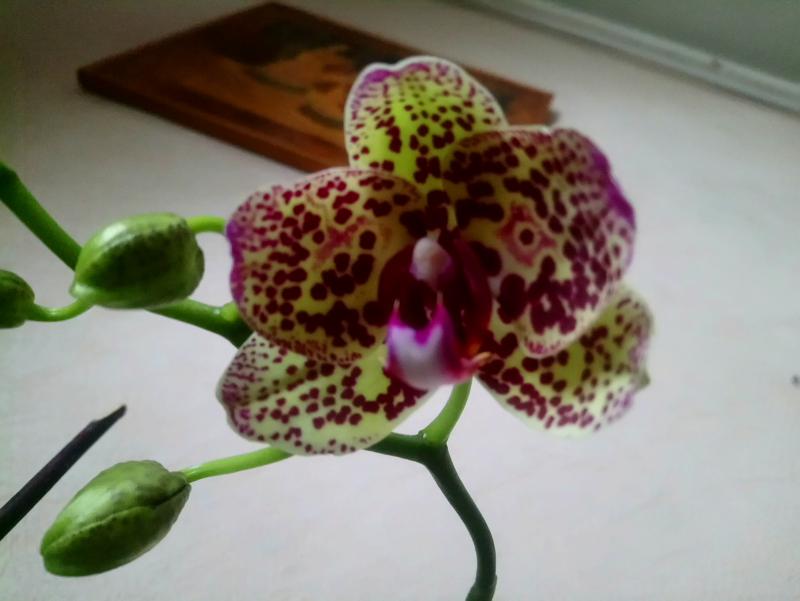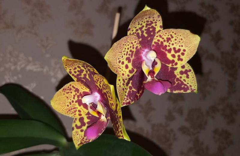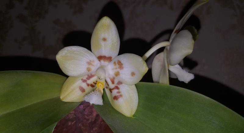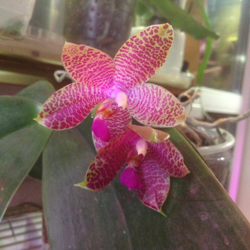 Z.M. Anakonda На старом цветоносе выдала 2 цветочка. Живет на северном подоконнике, без досветки. Цветочки по размеру меньше летних. Но какие пятнышки!