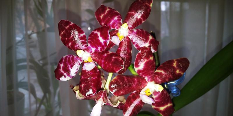 Phal.Coral Isles TH от Yaphon Farm. Цветочек 4 см (огорчил меня размер:girl_expect, пахнет листьями одуванчика, цвет в реале более глубокий фиолетовый, глянцевый и переливающийся.