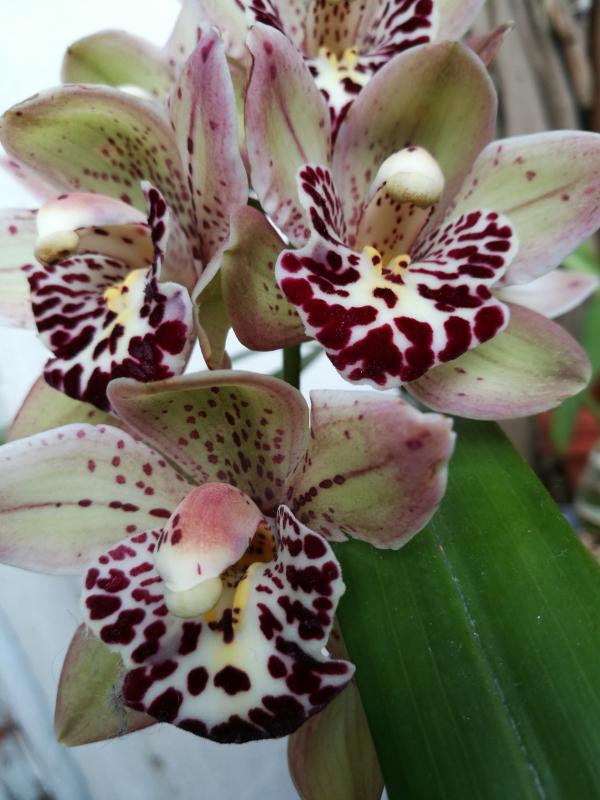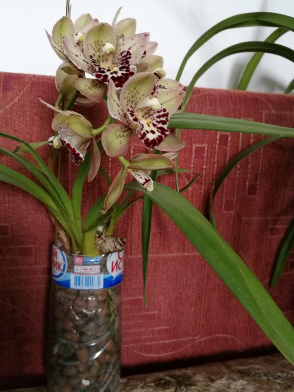 Приехал малыш, одна полноценная бульба. И эта бульба процвела, да еще как! Губа бархатная, блестящая, переливающаяся. А лепестки нежного кремово-зеленого цвета в бордовых разводах с веснушками. Именно они мне яйца лесных птичек напомнили. Знаете, они такие интересные, разноцветные и пестренькие. Кажется, что вылупится из них что-то волшебное.