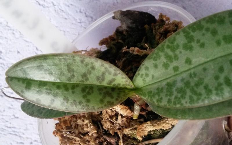 По поводу крапа на листьях, типа стюарта. У меня гибрид (lindenii x equestris) x lindenii. Очаровательный малыш, нетребовательный, растет активно, листья плотные. Если кому нравятся пятнистики :)