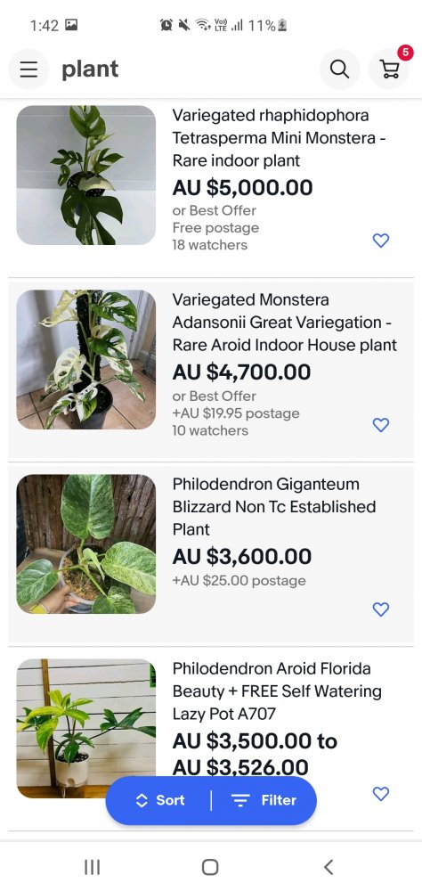Случайно нарвался на eBay на листинг вариегатной монстеры. Посмотрел соседние... И после этого мы ещё жалуемся что орхидеи дорогие? 🤣