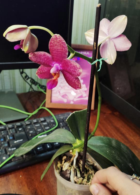 2. Хизис Chysis limminghei покупался давно на охоте. Большое растение, много бульб и корней. Цветет с каждого роста по два цветоноса. Любит попить. Сейчас наливаются бульбы после цветения. Есть один запаздавший ростик с цветоносом. 1700 р.
